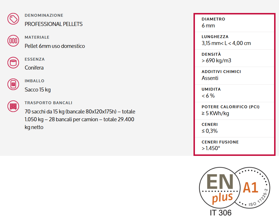 La miscela di puro legno vergine di abete rosso e bianco è stata studiata per assicurare la massima efficienza calorifica e il minor residuo di polvere e ceneri.