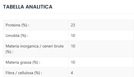 - Miscela di carni disidratate di maiale, pollo e manzo.